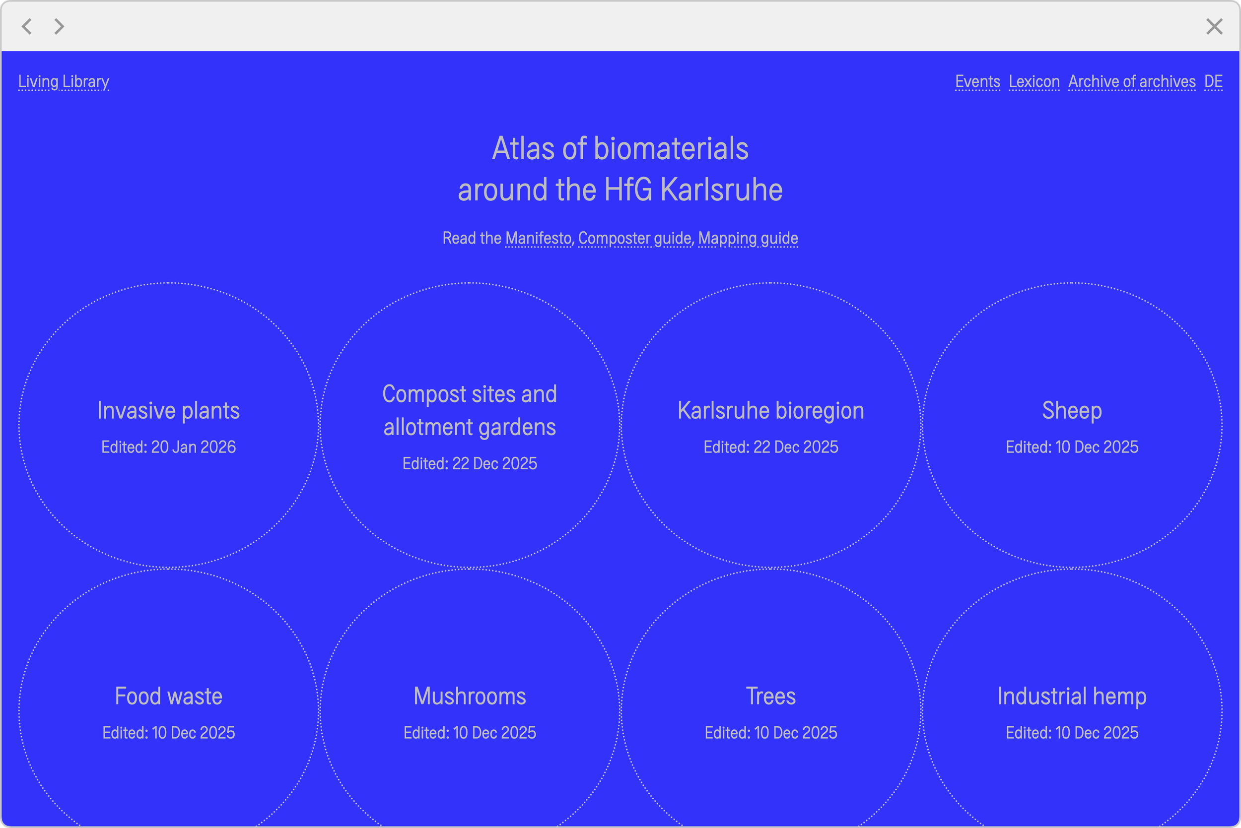 The Living Library is a transdisciplinary exploration of materials, making, and circular design, unfolding at the Bio Design Lab since April 2024. Over two years, it functions as a temporary, evolving material archive that rethinks artistic and design practice through regionally sourced, biodegradable materials.