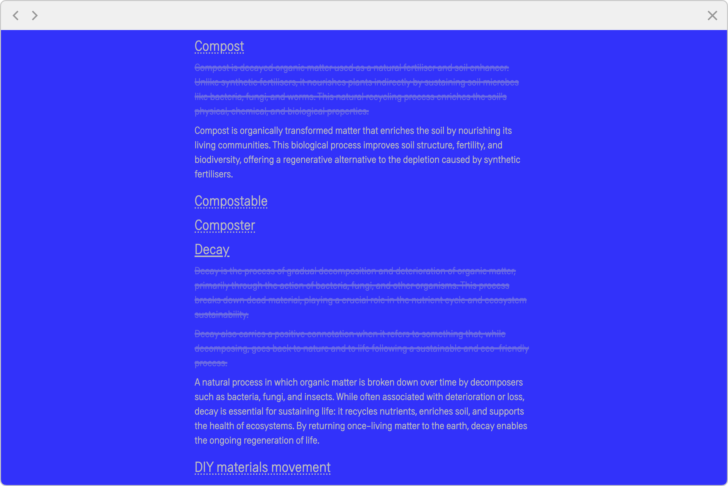 Compost is a symbol for the project. It shows: everything changes. Old things disappear, and new things emerge. The archive is always changing. The earth will become the final, permanent storage place.